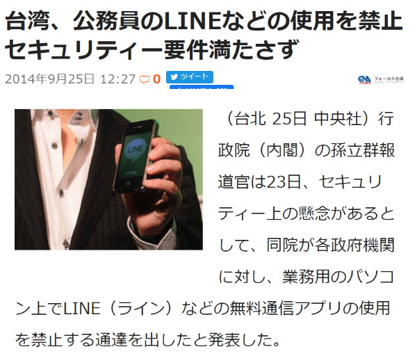 理由は単純にセキュリティーに問題があるから。 ただ個人利用ではなくあくまで公務、つまり国の情報などに関わる公務員などは禁止だったんだって。 台湾、公務員のLINEなどの使用を禁止 セキュリティー要件満たさず台湾、2014年からとっくにLINEを禁止していた。https://t.co/ZbQBK2IZtU