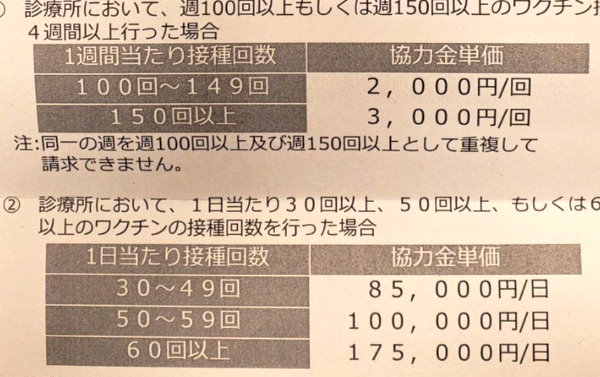 ワクチンインセンティブ。 ヤバいね、この医療ビジネス。 「1日あたりの金額」やからね。