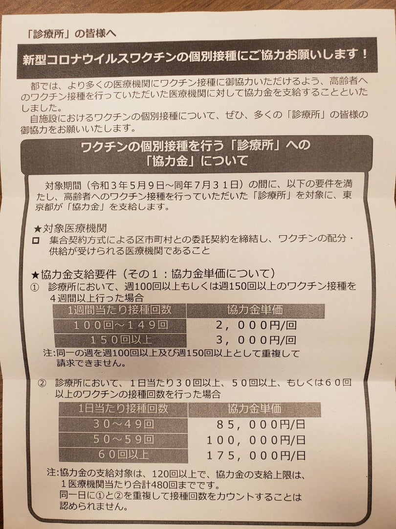 ワクチン接種業務の報酬で「2ヶ月で3,000万円」も稼いだ開業医がいるという・・・歯科・耳鼻咽喉科・皮膚科などの開業医(当然、呼吸器の専門家ではない)の中には、本業を休診してコロナワクチン接種を行った者が少なくないらしい。