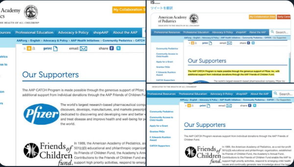 アメリカ小児科学会のトップスポンサーはファイザー社だった!
