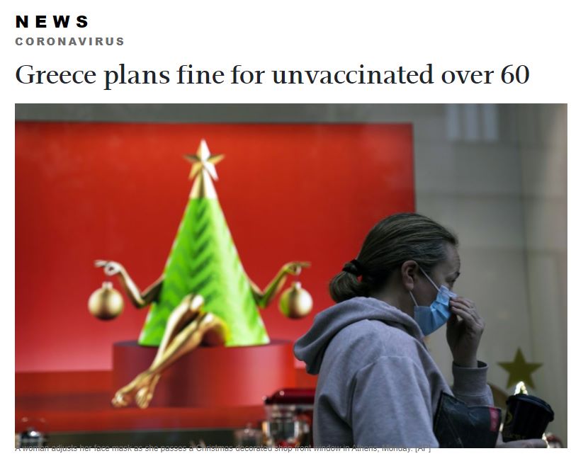 Greece plans fine for unvaccinated over 60ギリシャ首相、60歳以上のワクチン未接種者は、来年の1月16日までにワクチンを接種しなければ、毎月100ユーロの罰金を科されることになると発表。https://t.co/mAyYcdSMcW