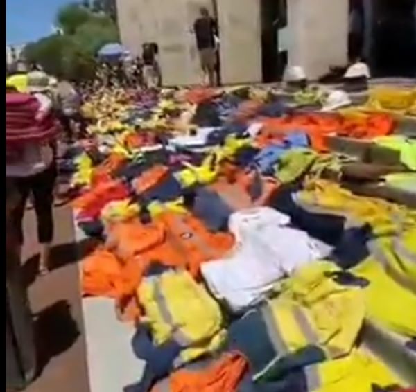 ワクチンの正体やたくらみを知ったら、強制にNO。 公共の仕事であろうと離職せざるを得ません。 さすがにコロナワクチンという遺伝子注射を体内に入れるわけにはいきませんからね。 ただこうなると社会や経済は回らなくなる。 このあとの展開が気になりますね。涙が止まらないの。拭いても拭いても湧いてくる。悔しさと一緒に。 オーストラリアの警察官や医師、看護師教師や鉱夫達がパースの国会議事堂の前で作業服を脱ぎました。 彼らはワクチンを拒否したので仕事を失ったのです。