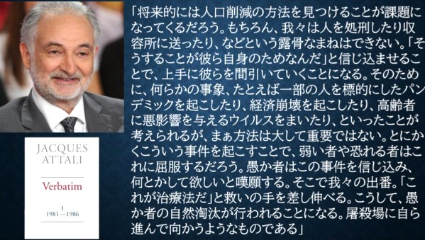 未来予測、、、フランスのジャックアタリ氏が80年代に書いている文章、、、 「将来的には人口削減の方法を見つけることが課題になってくるだろう、もちろん、我々は人…