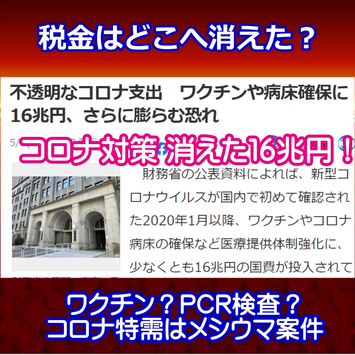 コロナ対策16兆円、ジャブジャブ使うが使途不明金!