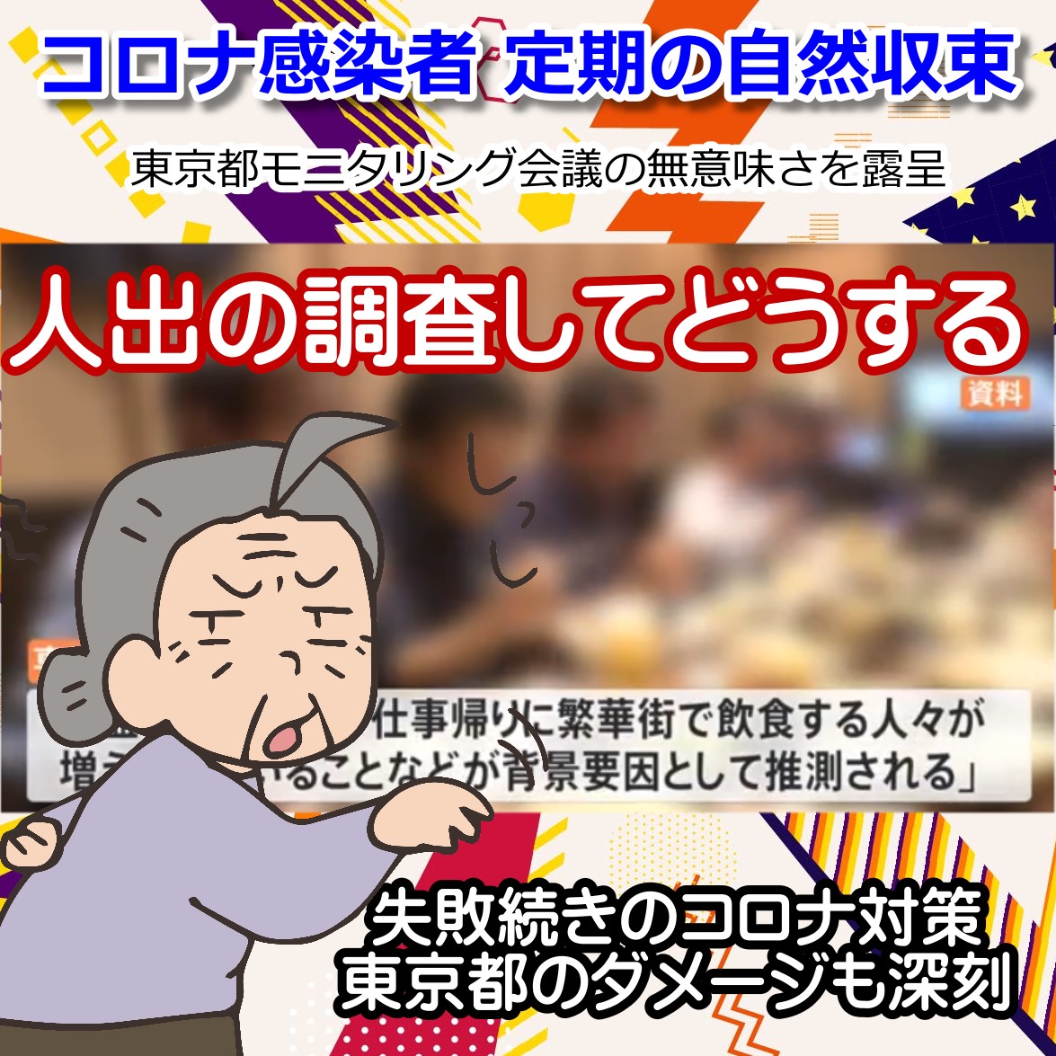 コロナ対策の行動制限なし、夜間の人流も増えた。 でも新規感染者は減っちゃった。 専門家はやることないので人出が増えた原因を分析。 いや、そんなのいらないから間違いを認めて解散してケロ! とりあえず都民ファーストが主導した東京都のコロナ対策の検証をしてくれ。 どのくらいお金をかけて、どのくらいの効果があったのか。 今後の話はそれからでいい。東京都・モニタリング会議 新規感染者は減少も夜間繁華街の人出が増加