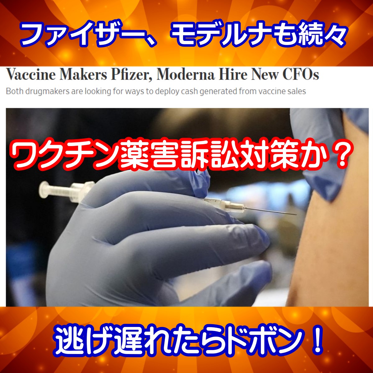 ワクチン訴訟対策?モデルナとファイザーのCFOが退任