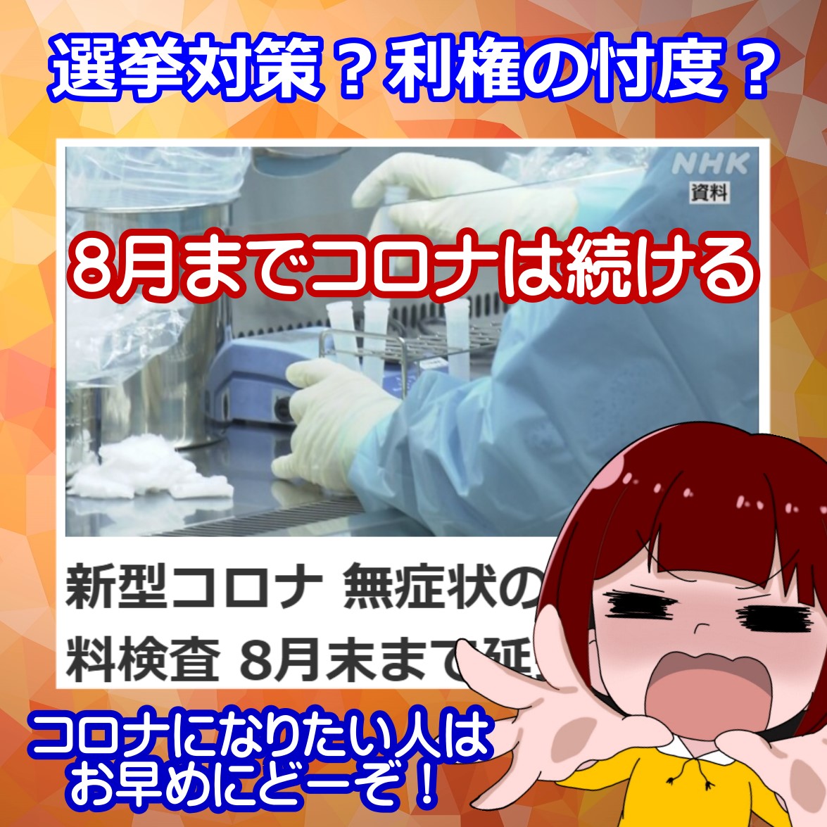 コロナ茶番、イカサマ検査で8月まで続けるってよ!