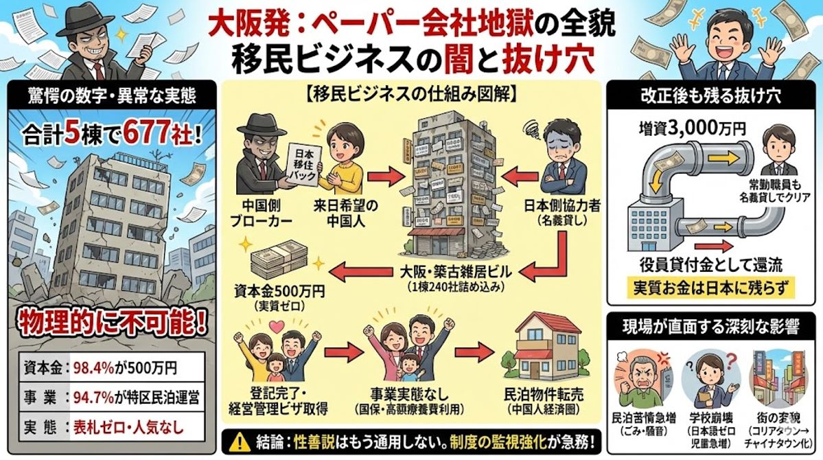 経営ビザで中国系「ペーパー会社」大阪で乱立、移民ビジネスの仕組み…500社超で「取締役」の日本側協力者も