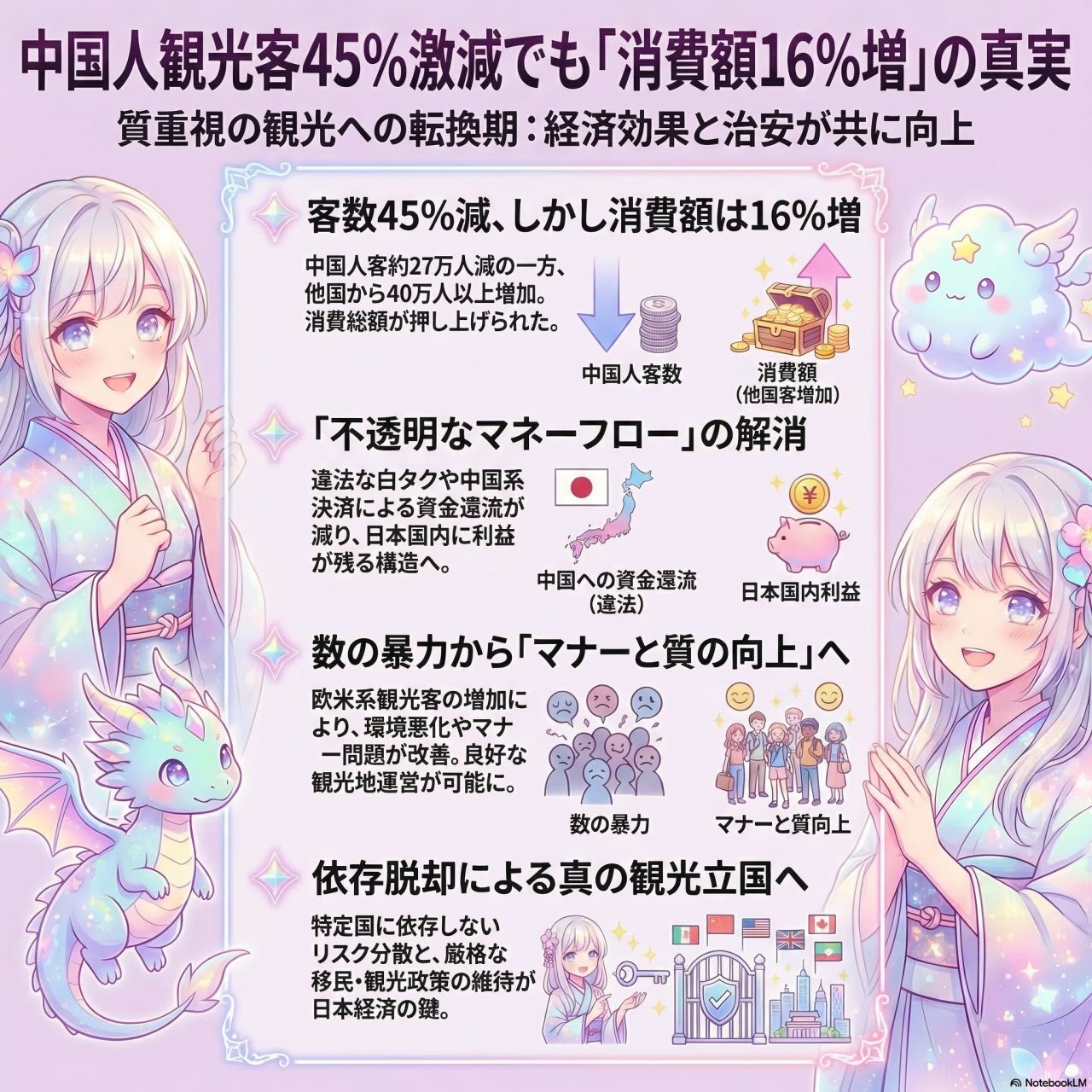 つまり、中後陣観光客が減ると世界から親日の観光客が増える。