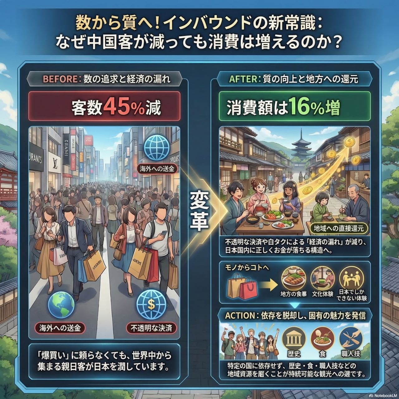 中国客の減少を嘆くより、新しい消費構造を正確に理解し、それに合わせた準備を進める方が建設的だ。日本各地の「当たり前の日常」が世界中の旅行者に刺さる時代は、すでに始まっている。