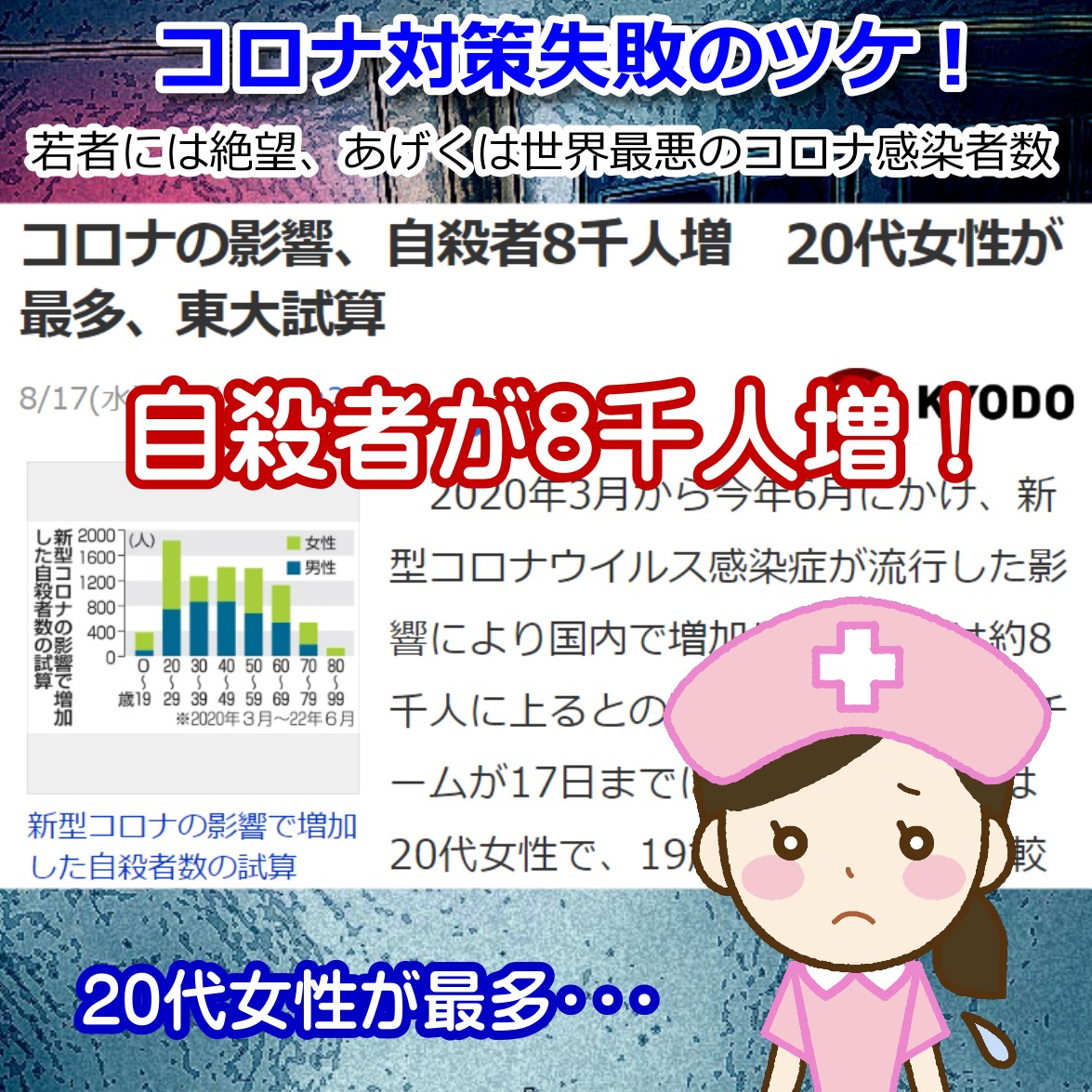 コロナで自殺者8000人以上(涙)20代女性が最多の絶望