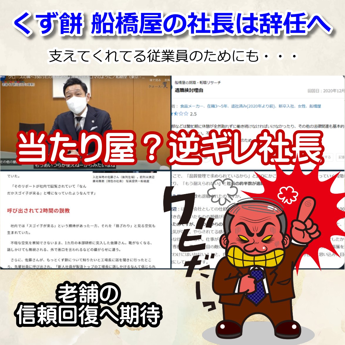 【発表】元祖くず餅の船橋屋、渡辺社長が辞任へhttps://t.co/OMXrINSGr3