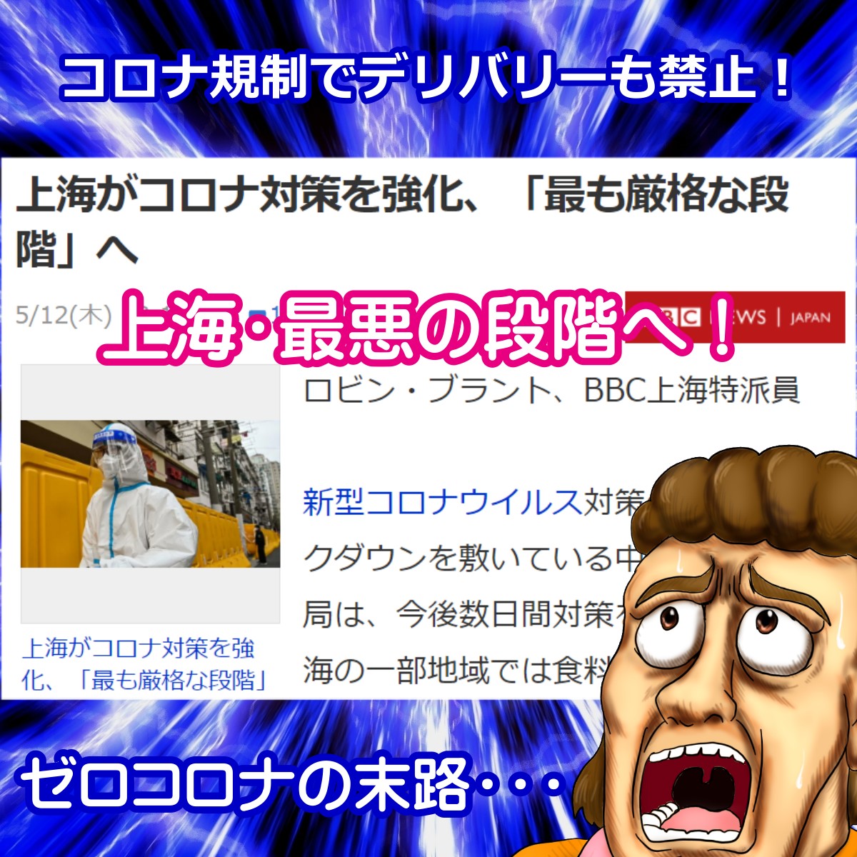 世界中で成功例のないコロナ対策、ロックダウン。 反面教師として上海が決定的な結果を出してくれました。 PCR検査の拡充、隔離なんて、日本も道を誤る恐れがあっただけに他人事ではないですね。 ウイルスには人間による感染対策など不可能。 意味の無いPCR検査の陽性に振り回されると、経済も社会も破綻するという貴重な事例ですね。規制7週目。 食品デリバリーもNGで さらに強化へ。