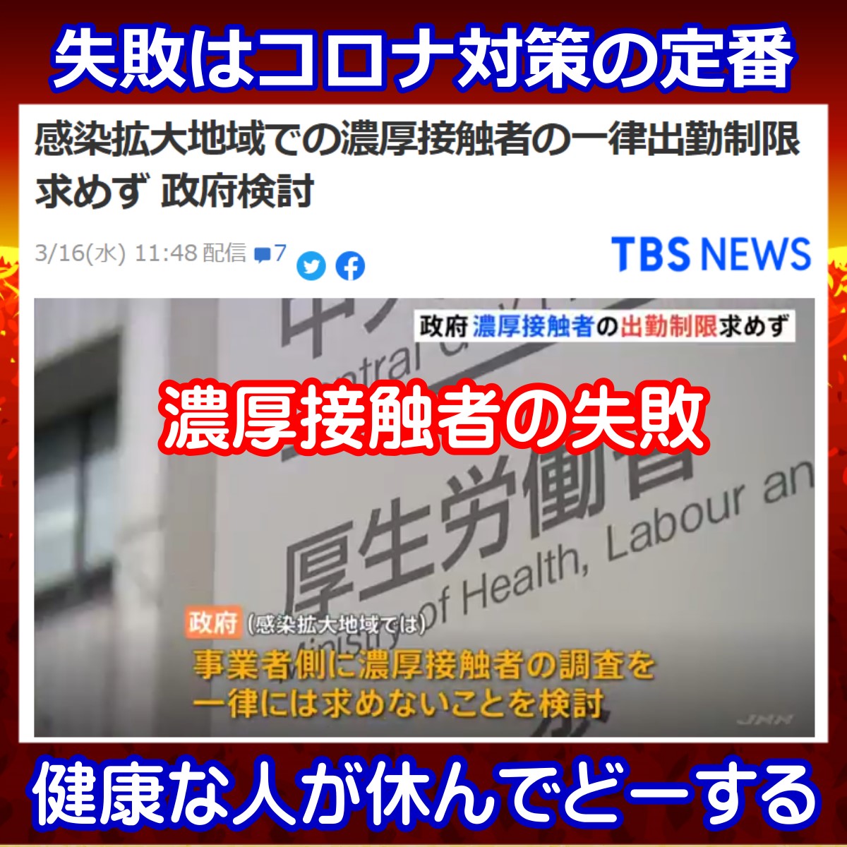 コロナと言えばやっつけ対策の代名詞となりましたが、濃厚接触者も破綻。 いかさまPCR検査の「陽性」が出ただけで、同じ職場などの人がアウト。 何もないのに7日の出勤自粛って、2病でアホだってわかりますけどね。 ということで仕事も社会もまわらないので、感染が拡大している地域なら農耕接触者は無視でOKだそうです。 拡大している地域なのに??? 何から何まで意味不明、もうやめなよ。 新型コロナやオミクロンの感染症対策でうまくいったためし、1度もないんだからw感染拡大地域での濃厚接触者の一律出勤制限求めず 政府検討