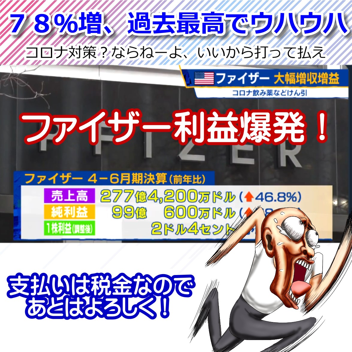 純利益78%増加!ファイザーコロナで四半旗ベースで過去最高を達成!