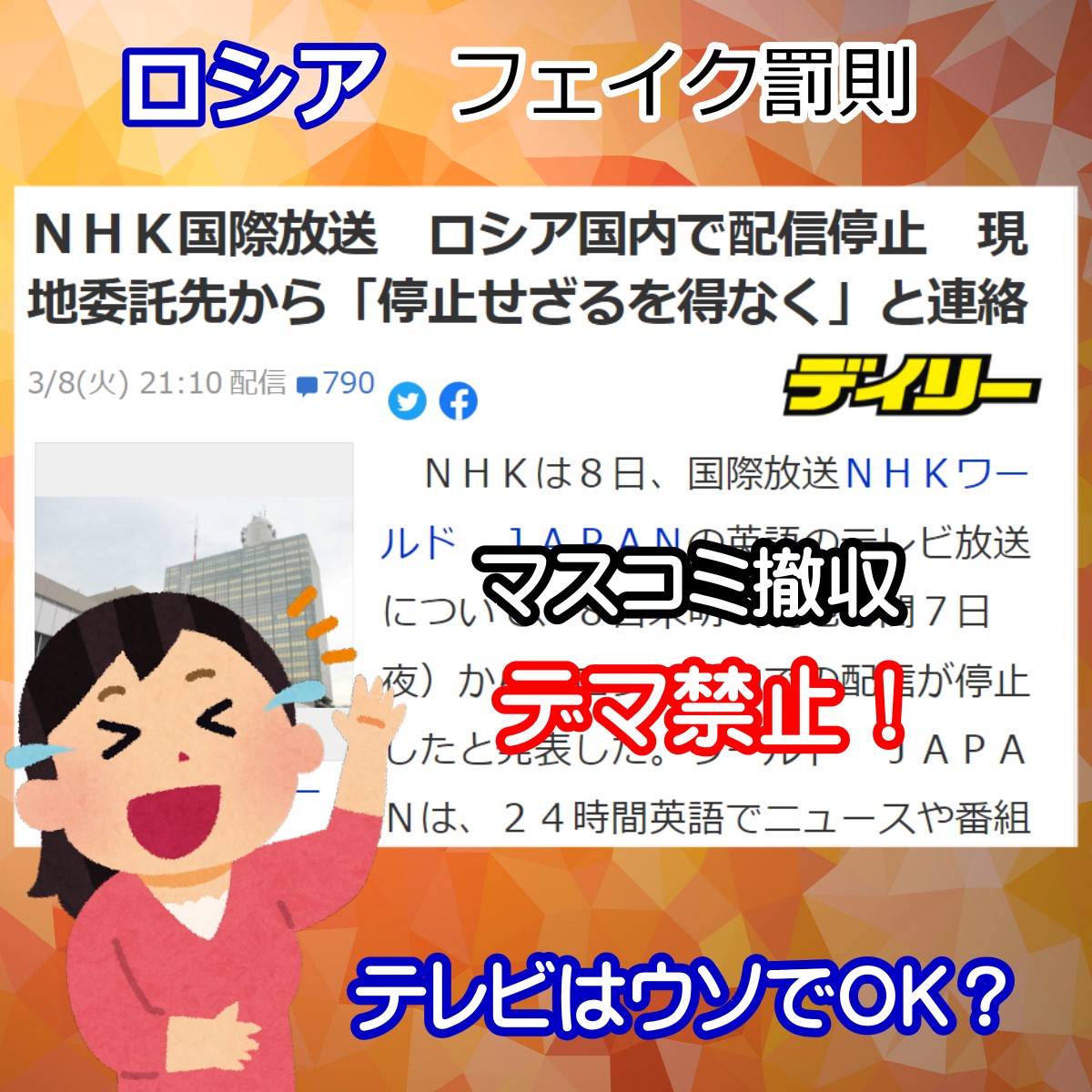 ロシア フェイク放送で最長15年の禁固刑という罰則でNHKなどマスコミ撤収w