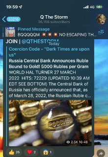 ロシア中央銀行は、2022年3月28日付で、ロシア・ルーブルの通貨が金にBOUNDすることを正式に発表しました。 レートは金地金1グラムにつき5,000ルーブルです。🚨👀🚨 WWG1WGA 🐸🎭202241-9🐸🎭 ◆Q The Stormチャンネルより。 自動翻訳 ロシア中央銀行は、2022年3月28日付で、ロシア・ルーブルの通貨が金にBOUNDすることを正式に発表しました。 レートは金地金1グラムにつき5,000ルーブルです。🚨👀🚨 BRICS諸国を代表する5社が金採掘の協定を締結 BRICS諸国のプレーヤー5社が、ロシアのチタ州にあるクルチェフスコエ金鉱を4億~5億ドルの生産前投資で開発することに合意した。 ———————— 記事自動翻訳 イラン、サウジアラビア、ロシア、ナイジェリアなどが、不換紙幣と引き換えに欧米に石油を売ることを拒否している。彼らのクレジットカードはキャンセルされた。 ロシア中央銀行、ルーブルを金に結合することを発表!1グラム5000ルーブルBRICS諸国を代表する5社が金採掘の協定を締結 Page not found – Coercion Code – "Dark Times are upon us""Brethren, do not be children in understanding; however, in malice be babes, but in understanding be men". - 1 Corinthia...BRICS諸国の5社は本日、ロシアのチタ州にあるクルチェフスコエ金鉱床の開発について、生産開始前の投資額4億~5億ドルで合意書に調印しました。 SUN Gold Ltd、中国国営金集団公司(CG)、ロシア政府投資基金、極東・バイカル地域開発基金(FEDF)、ブラジルおよび南アフリカのパートナーの5社であるとSUN Goldは声明で述べている。 (私の声) バチカンなどからの押収金塊のみならず、金鉱から金の採掘を開始するとは…. この先手先手の金本位制への動きは、今さらメディアも取り上げることができないだろう。 専門家が未だにロシアがデフォルト寸前と公然と言っている。 悪いがもう専門外の領域です。 次元の違いがまだわかっていない。 正に予告された新世界が始まりました。さあ、どうする気だ日本。 Access Denied Q The StormWhere We Go One We Go All 🐸🎭TokomaD3 Channel 🐸🎭WWG1WGA 🐸🎭202241-9🐸🎭◆Q The Stormチャンネルより。自動翻訳ロシア中央銀行は、2022年3月28日付で、ロシア・ルーブルの通貨が金にBOUNDすることを正式に発表しました。 レートは金地金1グラムにつき5,000...