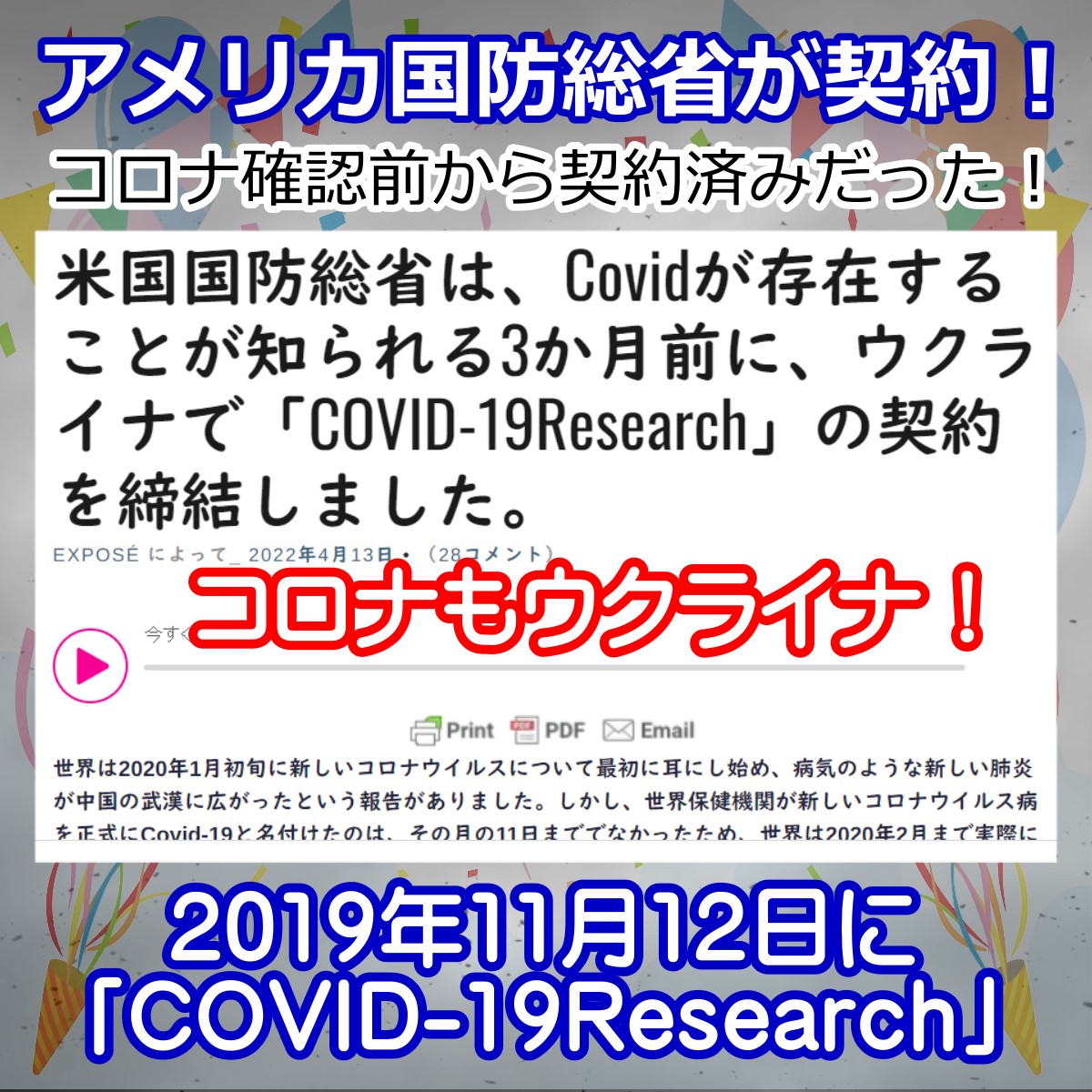 米国国防総省は、Covidが存在することが知られる3か月前に、ウクライナで「COVID-19Research」の契約を締結しました。