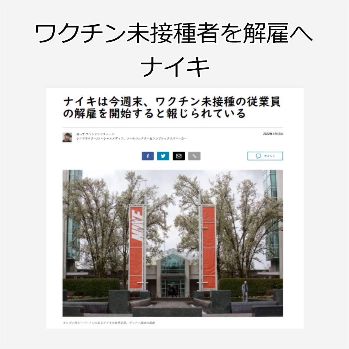 あれだけ 人種差別がー‼️ って騒いでおいて、自分は未接種者差別して従業員解雇までするって。 今後、NIKE履いたり着てる人は差別主義者だと思う事にする。 https://t.co/f7KjIc9gNb — Ananas🗣🗣 (@AnanasNon) January 16, 2022