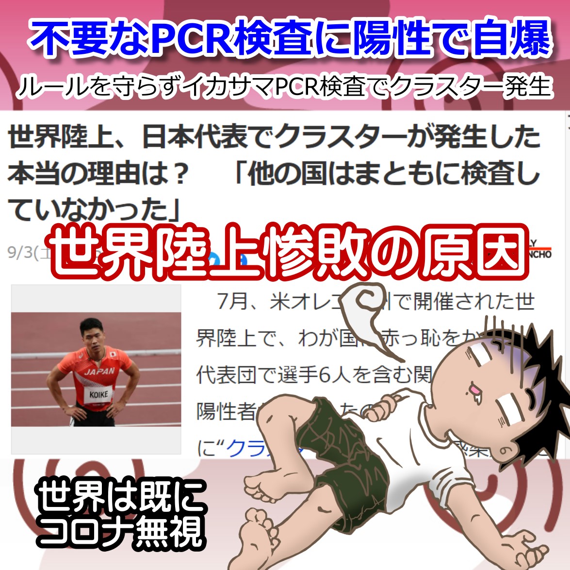 オレゴンでの世界陸上2022。 192か国でコロナ陽性者は58人で内19人が日本人・・・ 理由は必要のないPCR検査で勝手に陽性になり、あげく棄権。 ルールを理解せずに感染対策で自爆。沈みゆく日本の象徴ですね。 記事内では他国はちゃんと検査してないとかノーマスクとか、そりゃそうでしょう。 コロナはただの風邪って明らかになり、もはや対策は不要なのですから。 未だに誤った認識で間違ったコロナ対策で、あげくに6週連続で感染者世界ワースト。 日本の常識は、もはや反面教師の実例にしかなってないのですから。 ルールを守らず感染対策の失敗を世界に知らしめた日本。 スポーツ界のアスリート、エンタメ界のアーティストなども犠牲者ですね。 明らかになったのは、日本のコロナ対策、感染症対策、公衆衛生の常識が間違っていたと言うことなのですから。世界陸上で大会中検査は不要、他の国はまともに検査はせず、日本代表だけが自主的にPCR検査をして陽性者が見つかり、世界陸連からクラスター認定を受ける。結果、陽性の選手たちは欠場、この「“現地でも検査を”は日本政府の指示」とのこと。